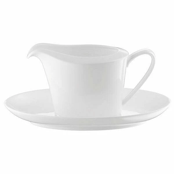 Rosenthal bringt mit dieser formschönen Sauciere ein edles und zugleich schlichtes Modell auf den Markt. Die Sauciere setzt sich zusammen aus einem Unterteller und der Soßenkanne. Beide Gegenstände sind in einem schlichten Weiß gehalten und auch die Formen sind eher klassisch. In der Kanne finden 0,45 l Soße Platz und lassen sich dank des Ausgusses kinderleicht über dem Essen verteilen. Natürlich kann das Behältnis in der Spülmaschine gereinigt werden und auch in der Mikrowelle zur Anwendung kommen.