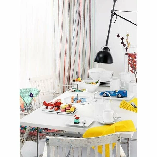 Die 3-teilige Etagere Loft von Rosenthal besticht vor allem durch ihr weiches, puristisches Design. Die runde Form und das elegante Porzellan sorgen dafür, dass die Etagere Loft ein zeitlos schönes Highlight auf jeder Essenstafel ist. Bewusst schlicht gehalten, stiehlt das Design auch aufwendiger Tischdekoration nicht die Schau. Der Abwasch ist bei der Etagere unproblematisch, da sie spülmaschinenfest ist. Der Durchmesser der Ebenen liegt bei 12-19-27 cm.