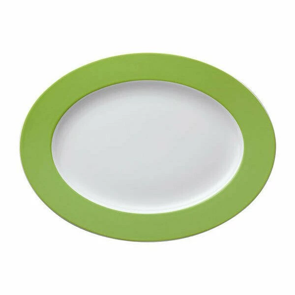 Auf der ovalen Servierplatte mit breitem Rand in Apfelgrün setzen Sie frisches Gemüse, knusprige Pommes Frites oder saftigen Braten farbenfroh in Szene. Mit 33 cm Durchmesser ist die Platte auch ideal zum Servieren mehrerer Speisen gleichzeitig.