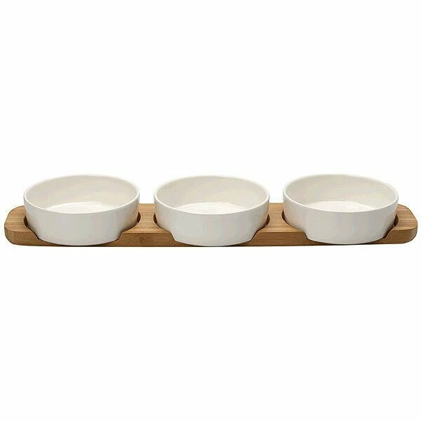 - edle Bambusplatte mit drei hochwertigen Schälchen aus Premium-Porzellan